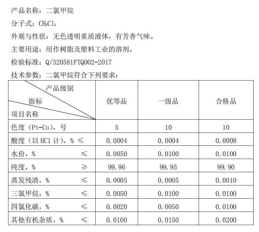 含量 工业级 优等品≥99.90%、一等品≥99.50%,合格品≥99.20%